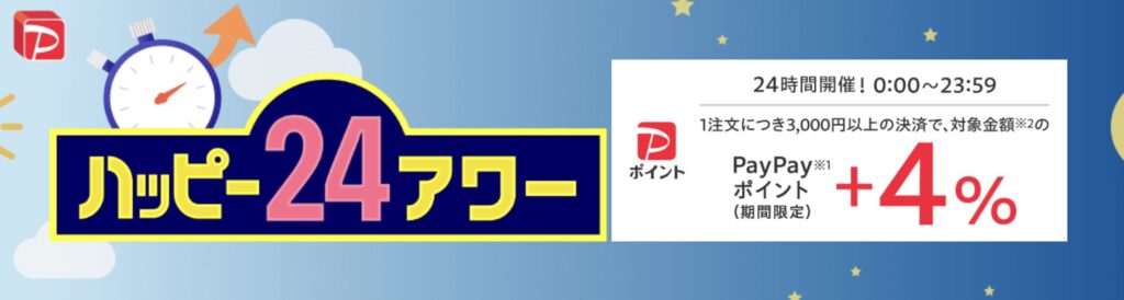 「5のつく日キャンペーン」は、毎月「5日 / 15日 / 25日」に開催される定番キャンペーンです。指定の支払い方法でお買い物をすると、購入対象金額の+4%相当のPayPayポイント(期間限定)が付与されます。