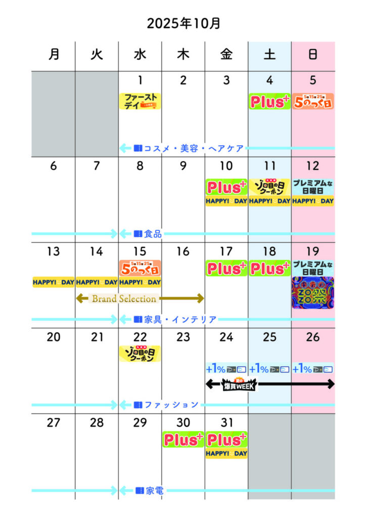 19 日 | プレミアムな日曜日 日曜クーポン 本気のZOZO祭 | +5% 5%OFFクーポン +10% |
