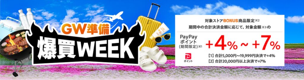 | 付与率 | PayPayポイント(期間限定) +4% |