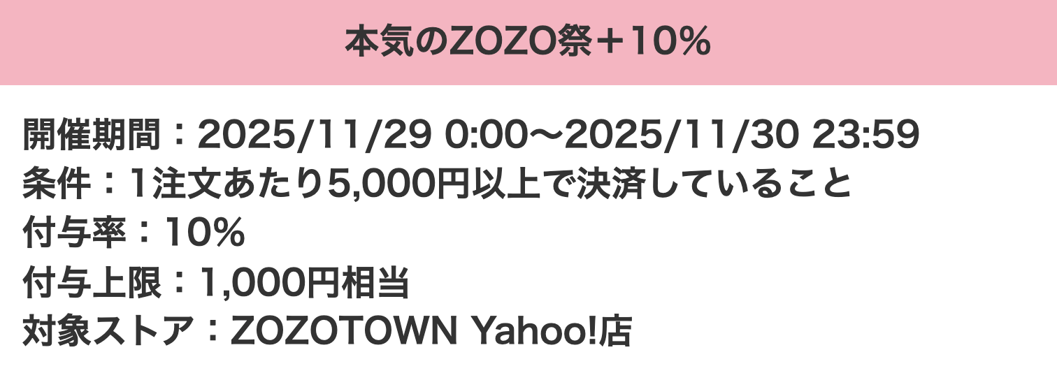 数ヶ月に一度開催される「 ZOZOTOWN Yahoo!店」の大型キャンペーン「本気のZOZO祭」を紹介しました。
